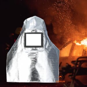 Chất liệu như bộ quần áo, có kính chống hơi nước làm bằng polycacbonat, chống hóa chất, chịu nhiệt 500 độ.